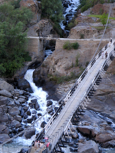 A Crossing bridge in Skardu. It passes through gorges.
